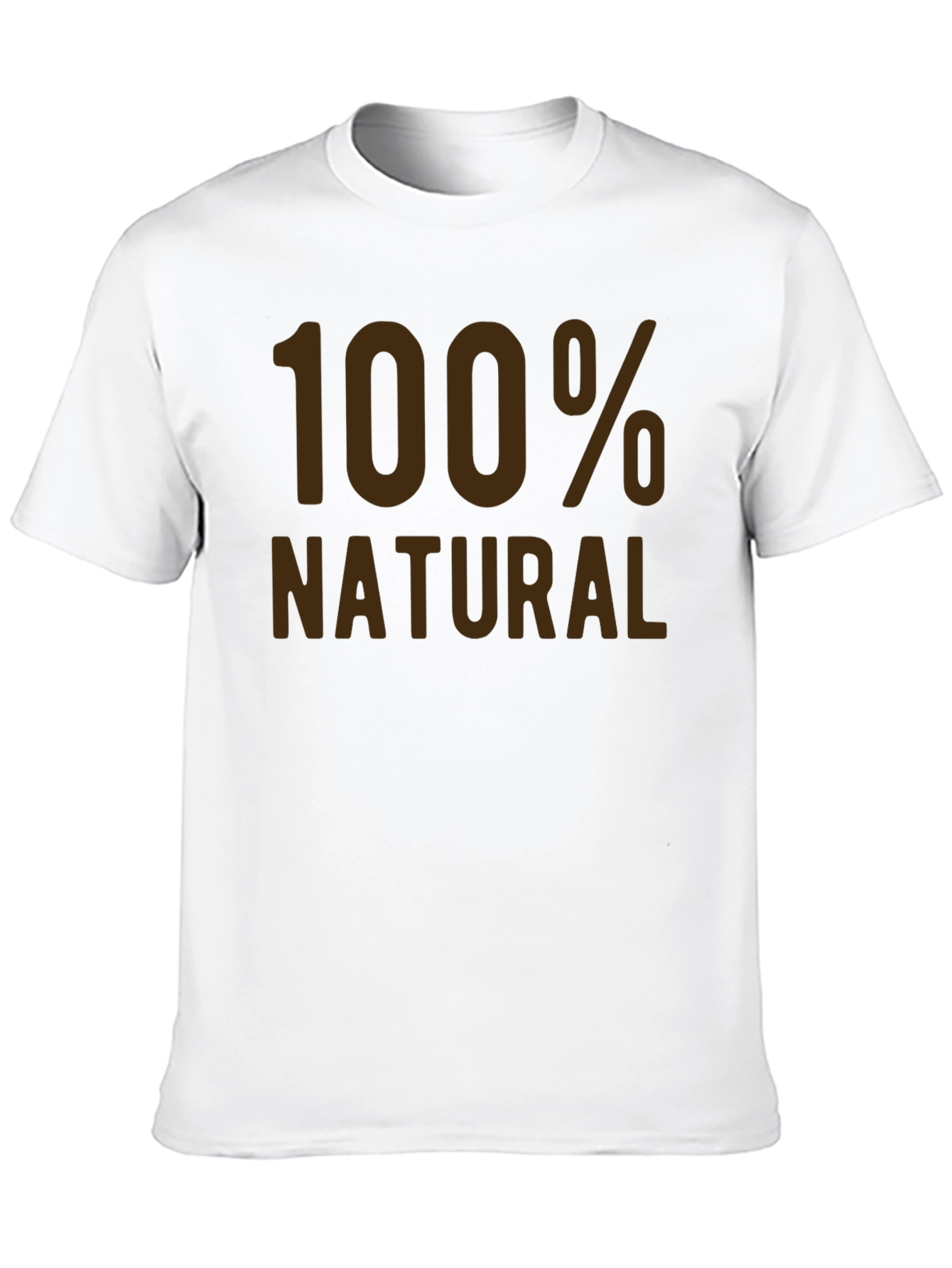 Showcase your commitment to natural living with this stylish and comfortable 100% Natural T-shirt. Crafted from a soft and breathable fabric, this classic black tee features a bold "100% Natural" print in a striking brown hue, making it a versatile addition to your casual wardrobe. The minimalist design ensures it pairs effortlessly with jeans, shorts, or joggers. Wear it to the gym, on nature hikes, or simply while relaxing at home. This tee is a perfect way to express your love for all things natural.