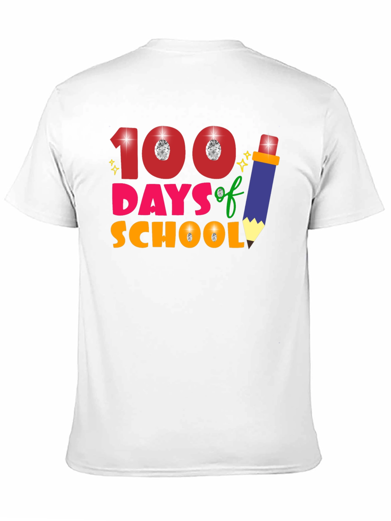 Celebrate 100 days of learning with this fun black t-shirt. The vibrant graphic features the phrase "100 Days of School" in a playful mix of red, pink, orange, and green lettering. The "0"s are creatively designed with jewel-like details. A large colorful pencil adds a touch of back-to-school charm, making this tee a perfect way for students and teachers alike to commemorate this special milestone. Made from comfortable materials, this shirt is great for everyday wear and school events. Show off your school spirit in style!