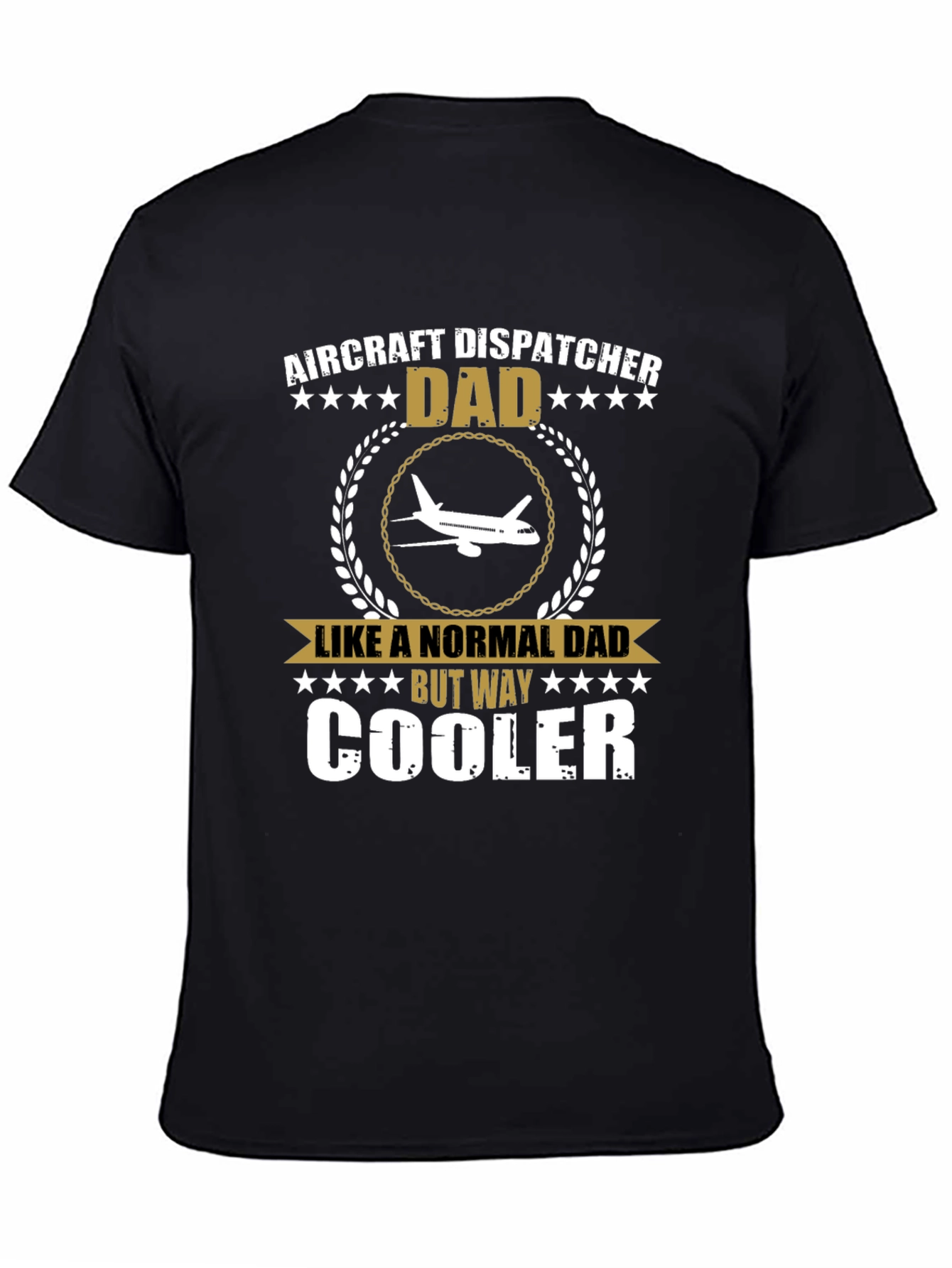 Show your appreciation for an aircraft dispatcher dad with this unique and stylish t-shirt. Crafted from comfortable black fabric, this tee features a striking graphic design with an airplane emblem encircled by a laurel wreath. Above and below the design are the words "AIRCRAFT DISPATCHER DAD" and "LIKE A NORMAL DAD BUT WAY COOLER", respectively, both rendered in bold, eye-catching fonts, framed by rows of stars. This shirt is perfect for casual wear, Father's Day, birthdays, or any occasion to celebrate a cool dad who works as an aircraft dispatcher. It's a fun and meaningful way to showcase his profession and special place in your life.