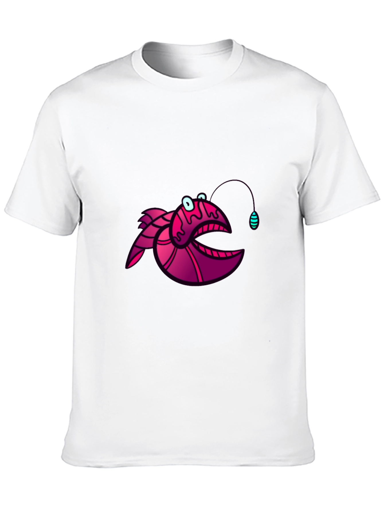 Show off your unique style with this eye-catching graphic tee! This black t-shirt features a bold and vibrant angler fish design in shades of pink and purple. The cartoonish style adds a playful touch, while the striking colors ensure you'll stand out from the crowd. Made from comfortable materials, this tee is perfect for casual wear. Dress it up with jeans or keep it relaxed with shorts �either way, you'll make a statement. It's an ideal choice for anyone who loves marine life or wants to add a bit of fun to their wardrobe. Get yours today and express your individuality!
