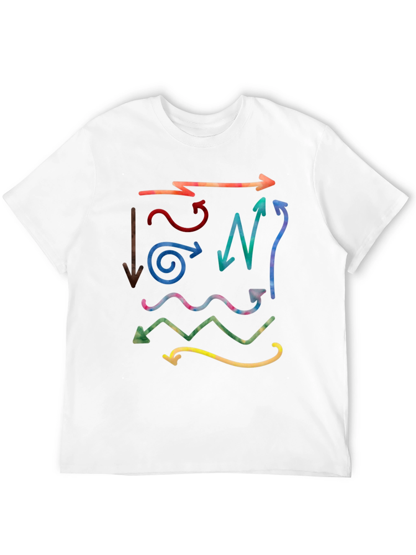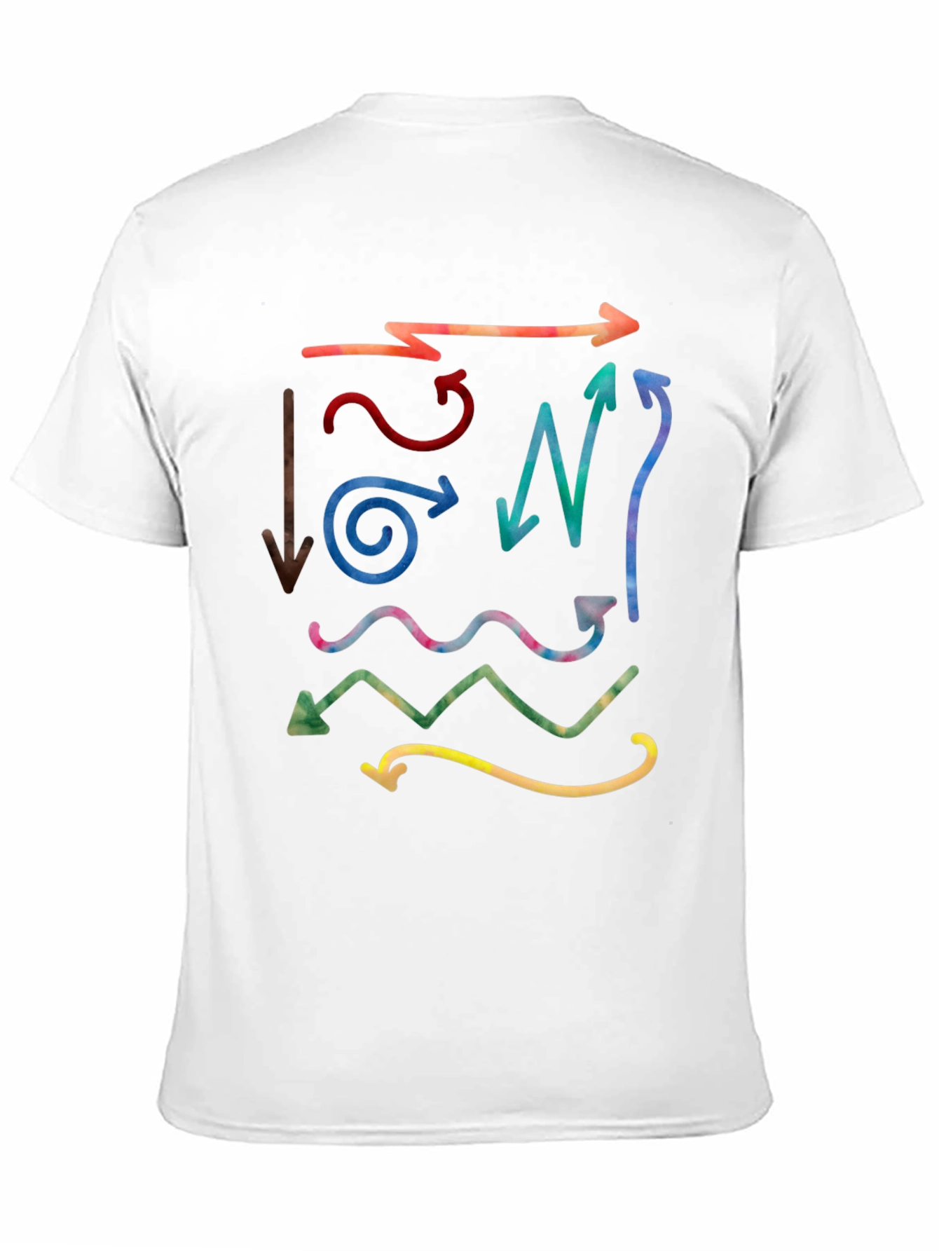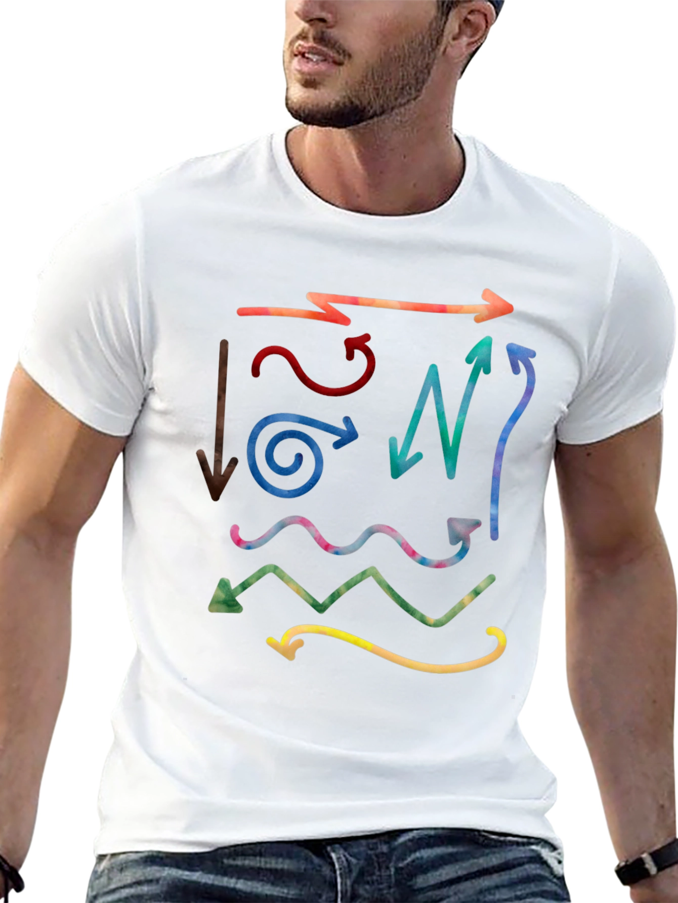 Show off your artistic side with this stylish black T-shirt. The shirt features a variety of colorful arrow designs, each with a unique shape and color gradient. These arrows add a playful yet modern twist to the classic black tee. Made from a comfortable, breathable fabric, this shirt is perfect for casual wear or making a statement. It's ideal for everyday outings, social gatherings, or simply lounging around in style. Embrace the artful expression with this wardrobe staple!