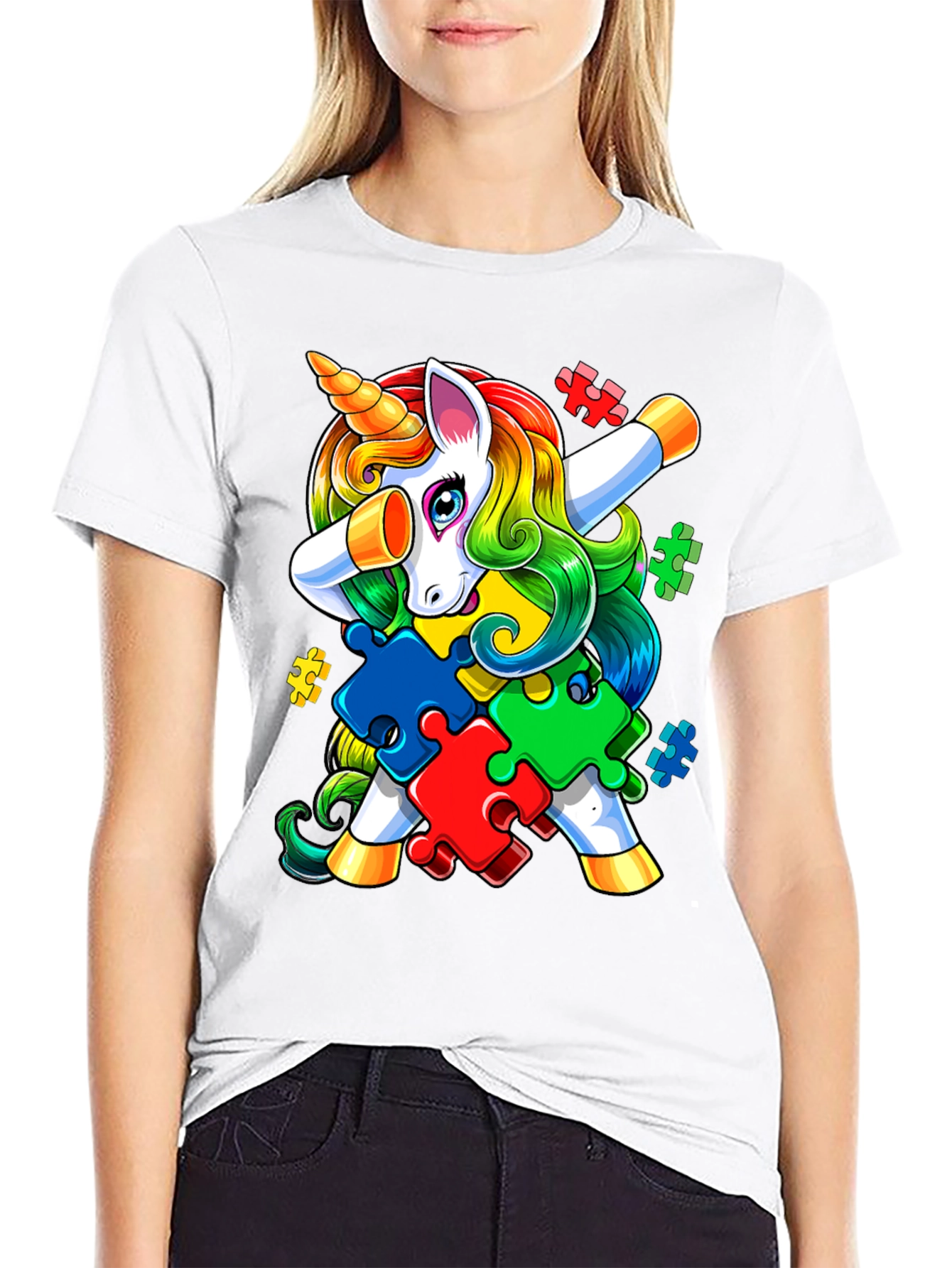 Show your support with this unique Autism Awareness T-shirt! Featuring a playful unicorn character dabbing amongst colorful puzzle pieces, this tee is perfect for raising awareness and promoting inclusivity. Made from a comfortable, breathable fabric, this t-shirt is designed for everyday wear. The vibrant graphic print ensures a standout look, making it ideal for Autism Awareness events, school functions, or casual outings. Join the movement and wear your support proudly with this eye-catching and meaningful t-shirt.
