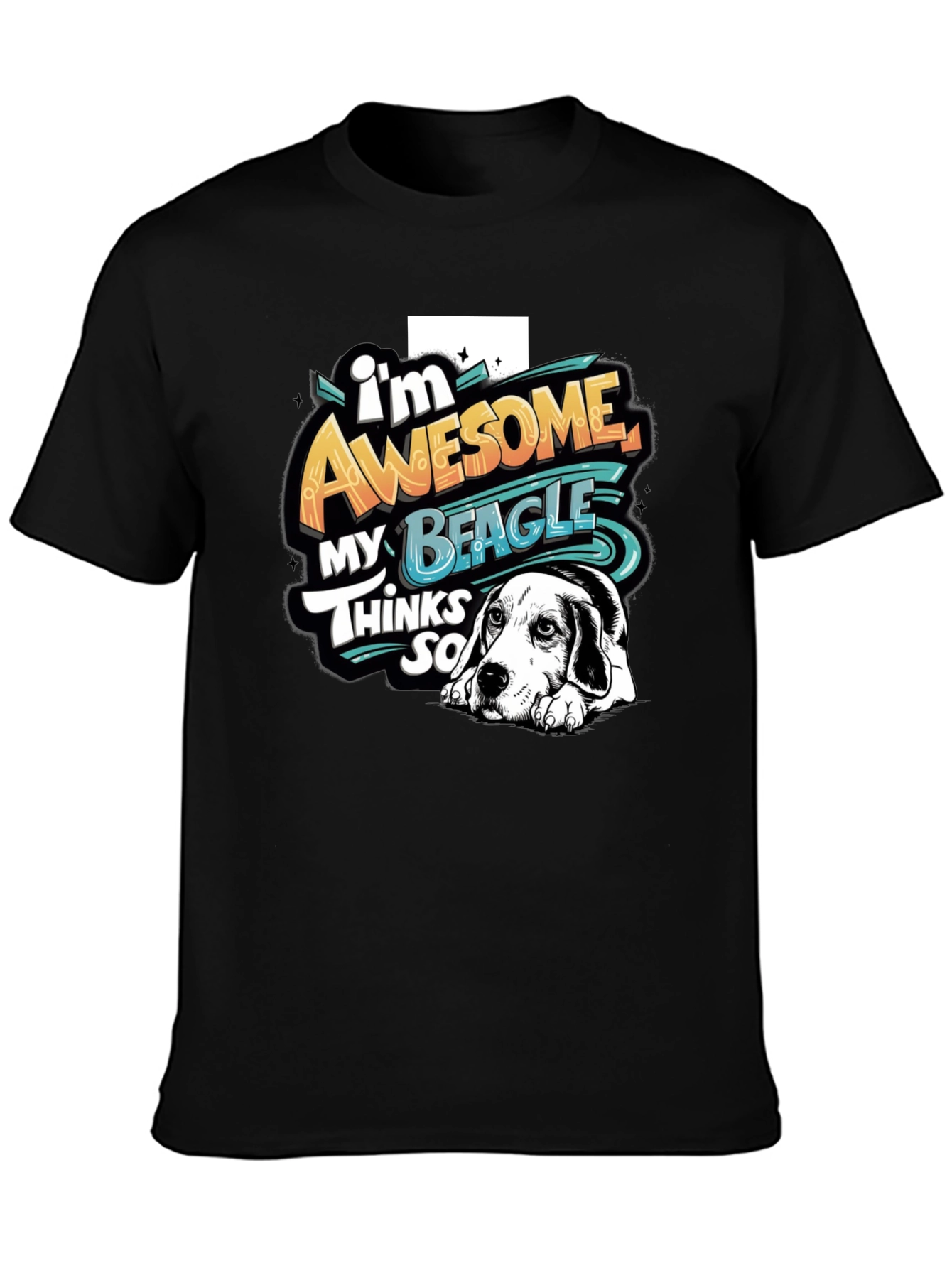Show your love for your beagle with this fun and stylish t-shirt. Made from a comfortable, breathable fabric, this black tee features a vibrant graphic print that reads "I'm Awesome My Beagle Thinks So" along with an adorable beagle illustration. The eye-catching design is sure to turn heads and spark conversations. Perfect for casual wear, dog walks, or just lounging around, this shirt is a must-have for any beagle owner. It's also a great gift idea for the dog lover in your life.