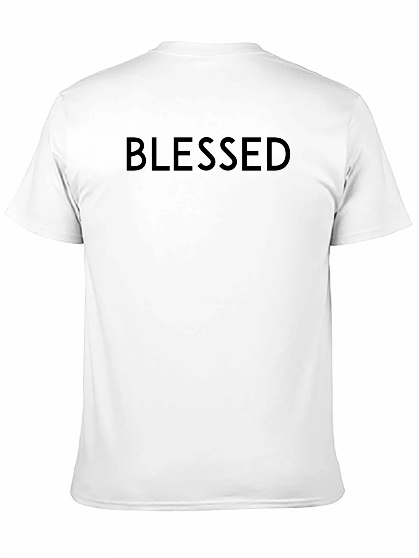 Embrace understated style with this 'Blessed' graphic tee. The shirt is a solid black color with 'Blessed' printed across the chest in a matching dark tone, offering a sleek, minimalist aesthetic. Crafted from what appears to be a soft and breathable cotton blend, this t-shirt provides all-day comfort and effortless style. Perfect for casual outings, relaxed weekends, or layering under a jacket, this versatile tee adds a touch of faith-inspired fashion to any wardrobe. The classic crew neck and short sleeves offer a timeless silhouette. Show your gratitude and spread positivity with this simple yet meaningful statement piece.