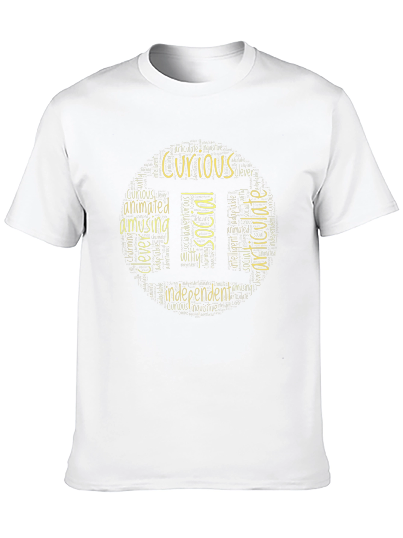 Express your unique personality with this stylish black t-shirt featuring a captivating word art design. The design incorporates positive and descriptive words such as 'Curious,' 'Social,' 'Independent,' 'Articulate,' 'Clever,' and more, creating a visually appealing and expressive graphic. Crafted from a comfortable and breathable fabric, this t-shirt is perfect for everyday wear. Show off your intellectual and social side while enjoying all-day comfort. This shirt is a great way to express your personality. Wear it to social gatherings, casual outings, or as a conversation starter. A standout addition to any wardrobe, this t-shirt combines style, comfort, and a touch of self-expression.