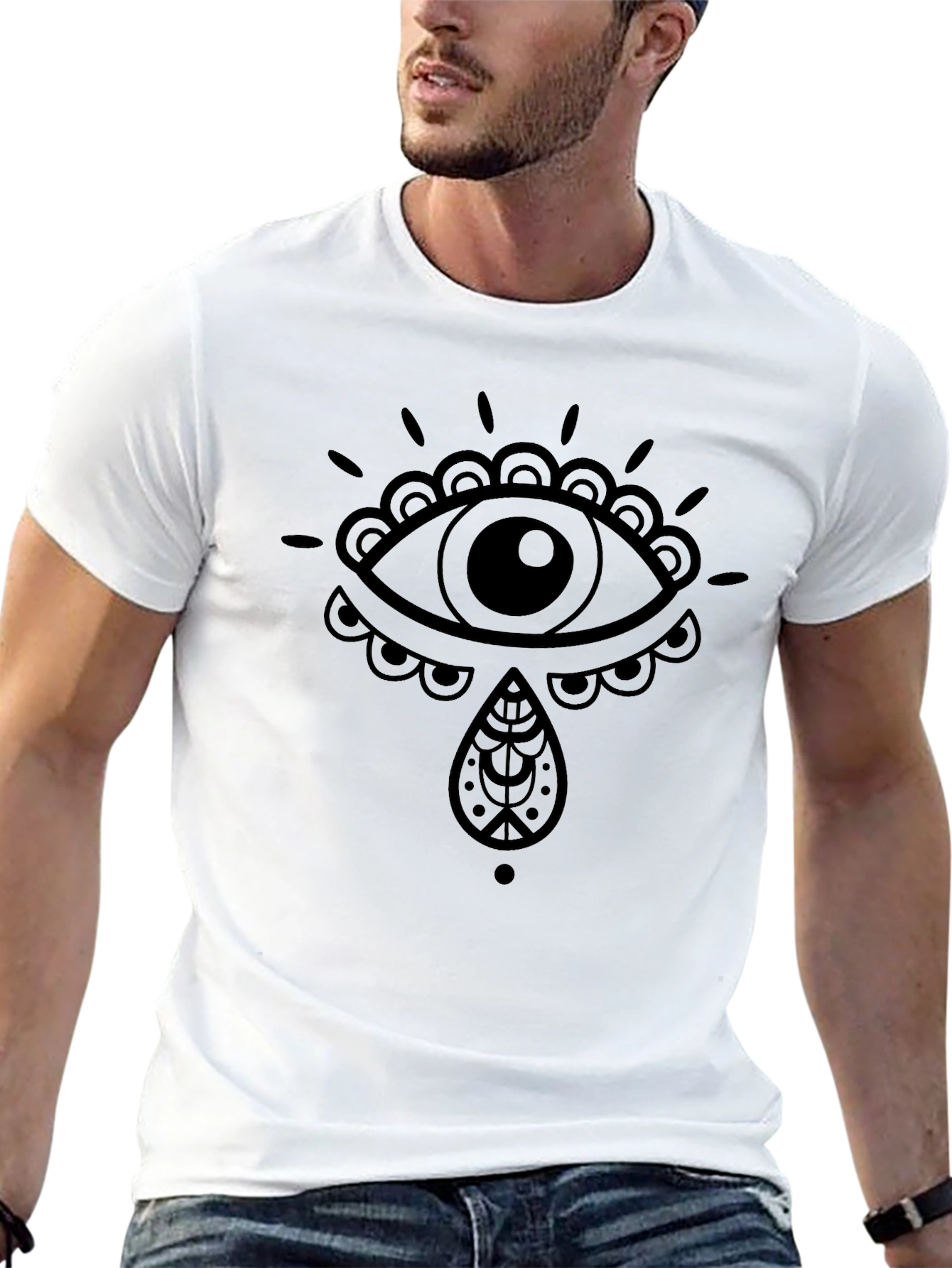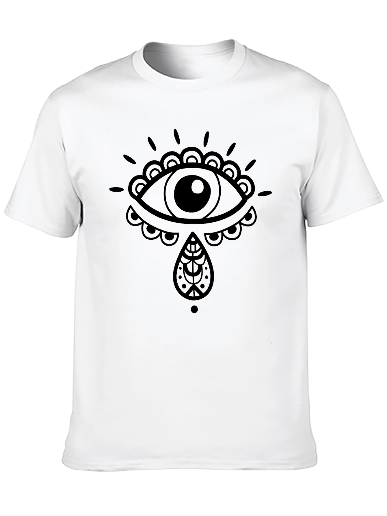 This stylish black t-shirt features a unique and eye-catching eye graphic design, perfect for adding a touch of individuality to your wardrobe. Made from comfortable cotton, this tee is ideal for everyday wear. The detailed graphic showcases intricate patterns, making it a standout piece. Whether you're heading to a casual outing or just relaxing at home, this t-shirt offers both style and comfort. Its simple yet bold design ensures it pairs well with a variety of outfits. Upgrade your casual look with this must-have graphic tee.