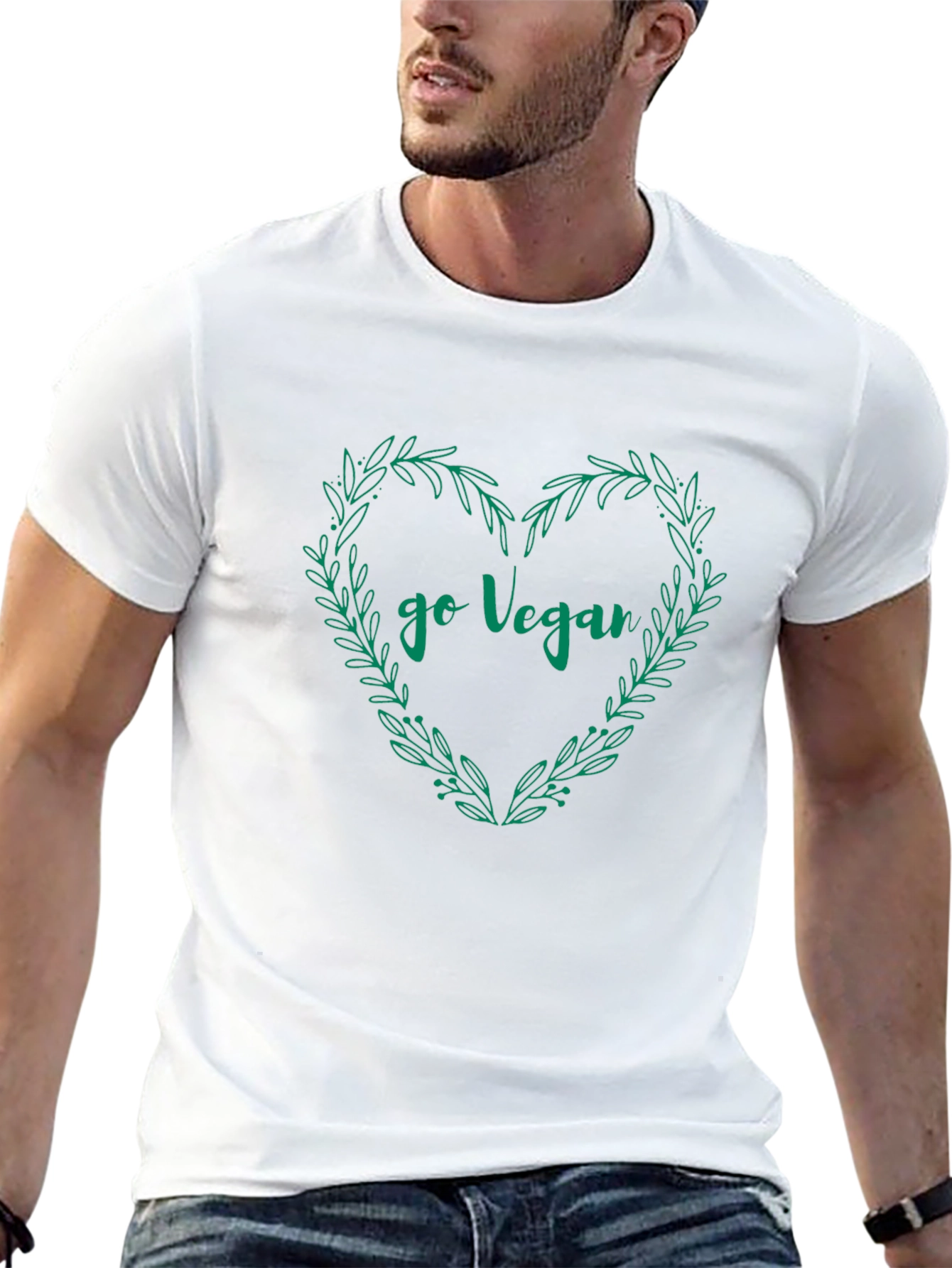 Go Vegan T-Shirt Heart Wreath Design