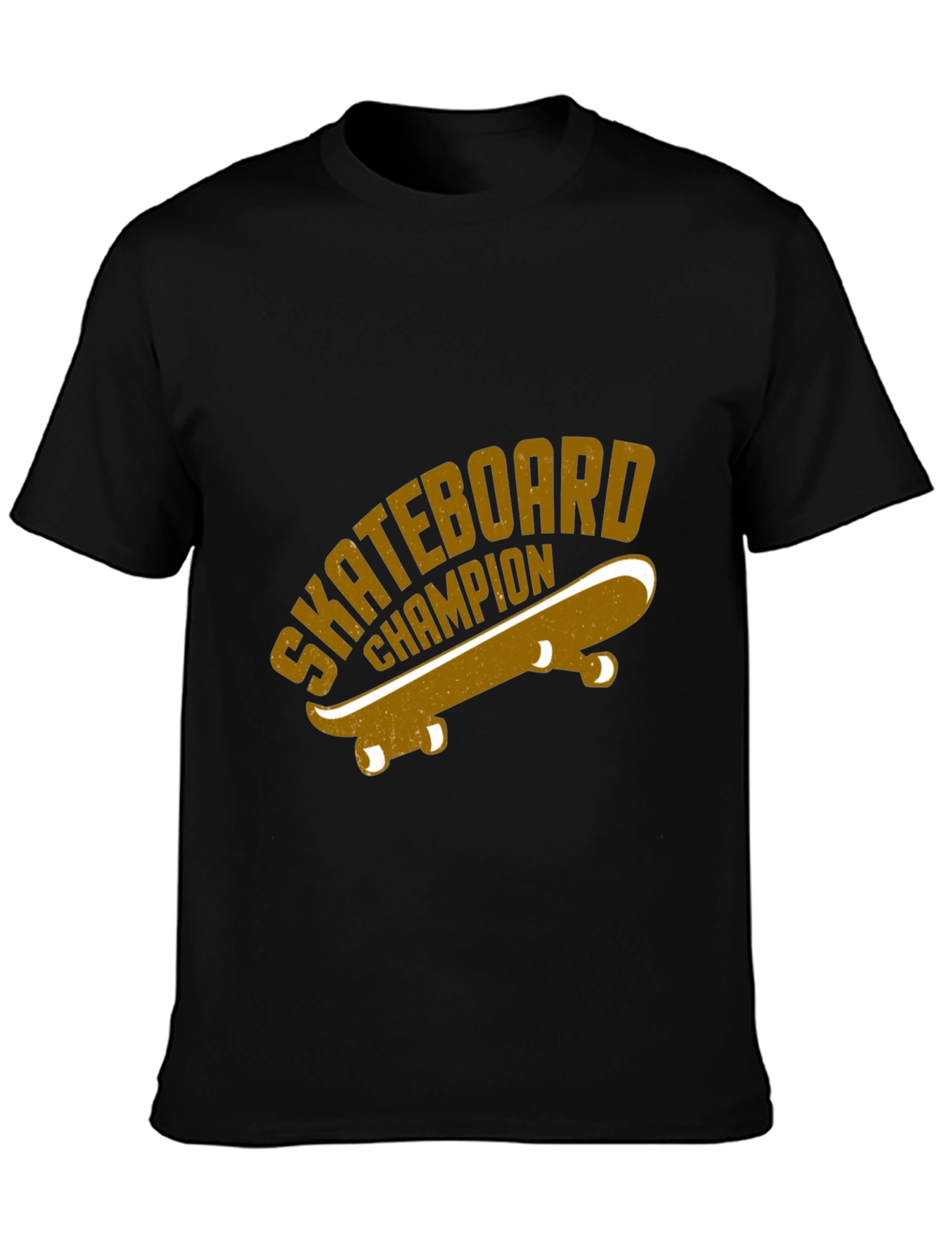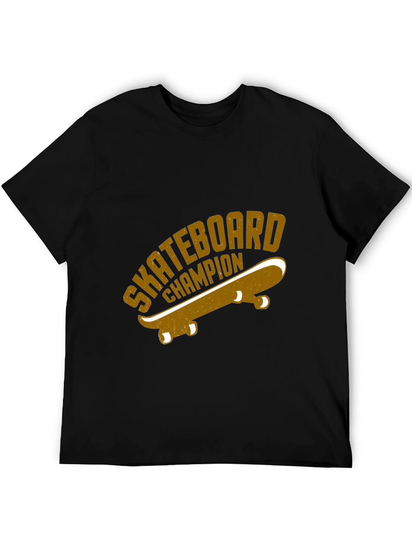 Show off your love for skateboarding with this stylish black t-shirt. Featuring a vintage-inspired graphic of a skateboard and the words "Skateboard Champion", this tee is perfect for casual wear. The design has a retro vibe, with a golden-brown color scheme that stands out against the dark background. Made from comfortable, breathable fabric, it's ideal for everyday use. Whether you're hitting the skate park or just hanging out with friends, this t-shirt lets you express your passion for skateboarding in style. Comfortable fit for ultimate comfort.
