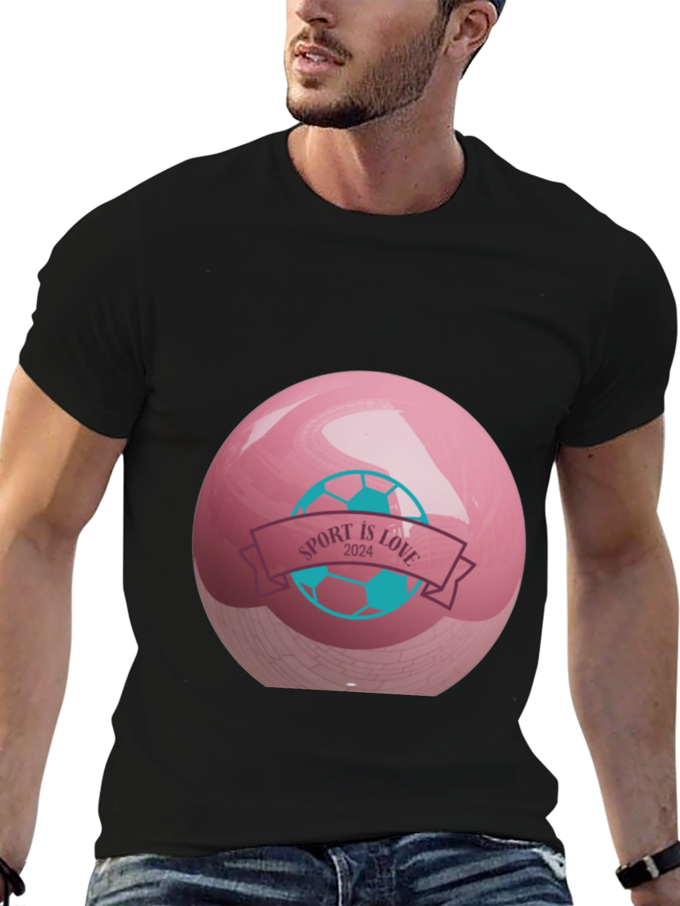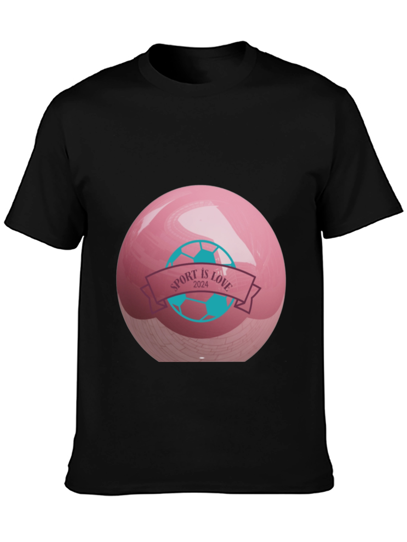 Show your passion for sports with this stylish black t-shirt. Featuring a unique graphic design with a stylized soccer ball encircled in a pink orb, and the words "Sport is Love 2024" inscribed on a ribbon, this shirt is a must-have for any sports enthusiast. Made from comfortable, breathable material, this shirt is perfect for everyday wear, workouts, or cheering on your favorite team. The design is eye-catching and makes a statement. The classic black color ensures it pairs well with any outfit. Get yours today and express your love for sports!
