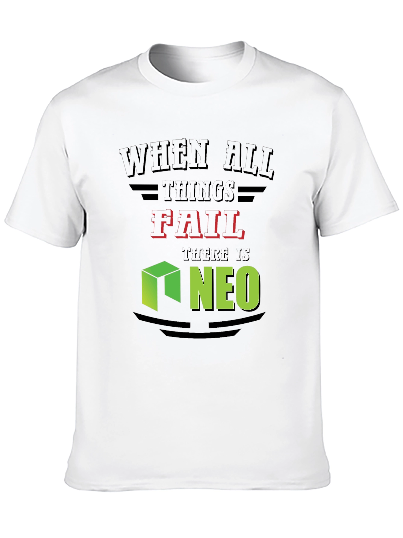 Embrace the world of cryptocurrency with this eye-catching black t-shirt featuring the bold statement: "When All Things Fail, There Is Neo." The design incorporates a vibrant green Neo cube logo alongside the text, making it a perfect conversation starter for crypto enthusiasts. Crafted from comfortable, breathable fabric, this tee is ideal for casual wear, crypto meetups, or lounging at home while trading. Show off your belief in decentralized technologies with this stylish and unique t-shirt.