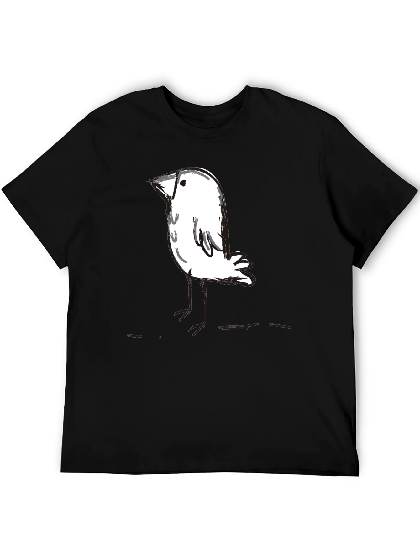 Embrace casual comfort with this stylish black t-shirt featuring a unique, hand-drawn style bird graphic. The simple yet eye-catching design adds a touch of whimsy to your everyday wardrobe. Crafted from a soft, breathable fabric, this tee offers all-day comfort and is perfect for layering or wearing on its own. Its classic fit makes it a versatile piece for various occasions, from relaxed weekends to casual outings. Show off your unique style with this expressive graphic tee. A must-have for bird lovers and art enthusiasts alike. Upgrade your closet today!