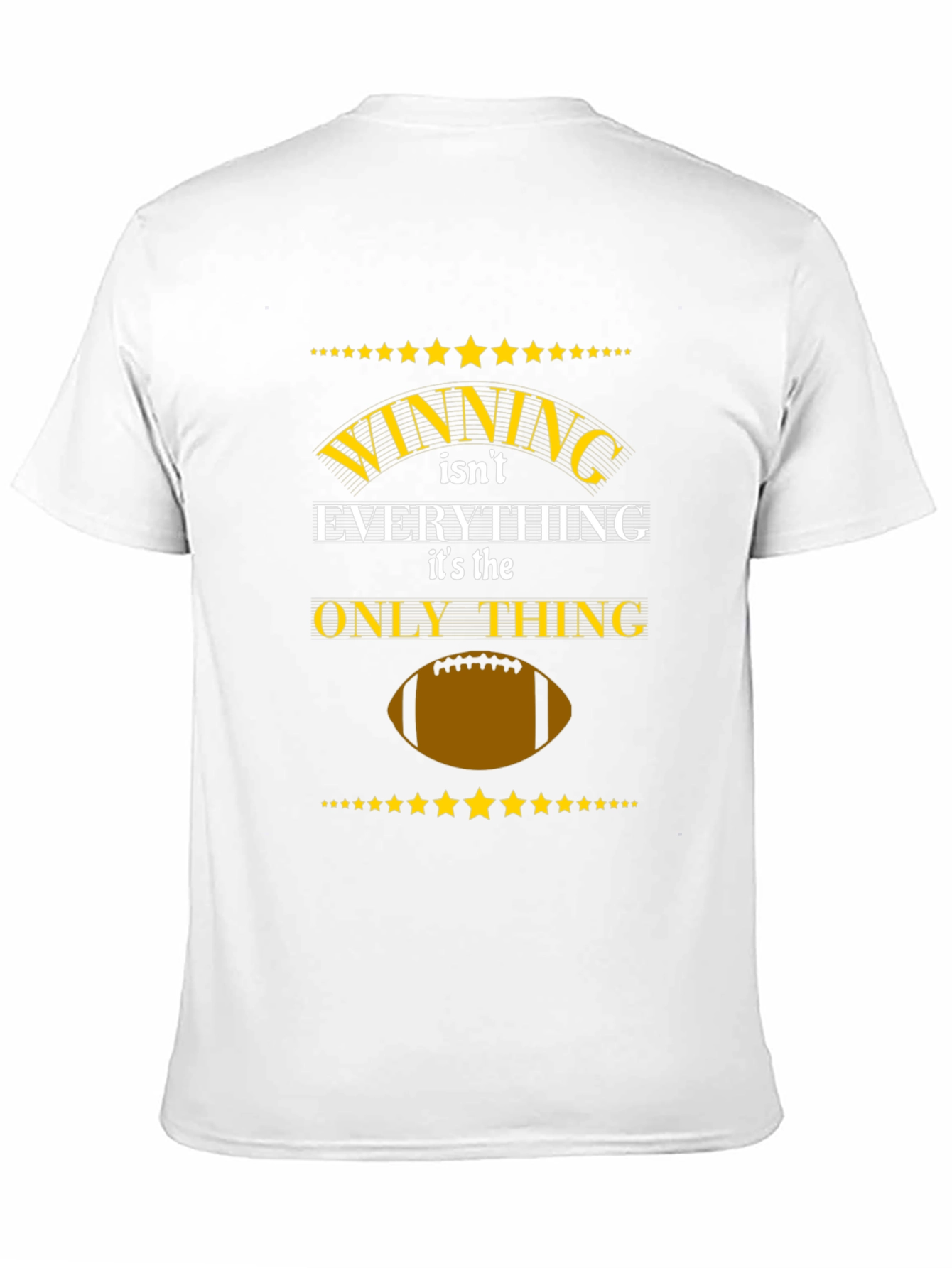 Show your passion for winning with this stylish black t-shirt. Featuring a bold graphic print, the design includes the inspiring message "Winning isn't everything it's the ONLY THING," arranged around a football illustration and accented with star details. Made from a comfortable-looking fabric, this tee is perfect for casual wear, game days, or workouts. Make a statement about your dedication to victory with this standout t-shirt. Great for athletes, coaches, and fans alike.